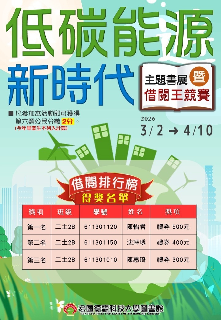 本學期新活動「低碳能源新時代」主題書展暨借閱王競賽